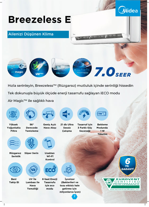 Midea Air ve M SmartHome uygulamaları ile cep telefonunuzdan klimanıza bağlanarak cihazınızı kontrol edebilir, güncelleyebilir ve müşteri hizmetlerine başvurabilirsiniz. Ayrıca HEPA filtrelerinin periyodik olarak değiştirilmesi gerektiğinden, M SmartHome uygulamasına, filtreleri her 600 saatte bir değiştirmenizi hatırlatan bir işlev yerleştirildi.” 4 Metre Bakır Boruya Kadar Ücretsiz Montaj